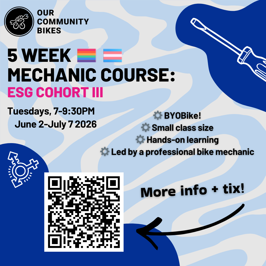 We offer ESG specific runs of our popular 5 Week Mechanic's course, including a series starting April 21, and another starting June 2. The April cohort has sold out, but you can register for the June 2 start date on our eventbrite page here.